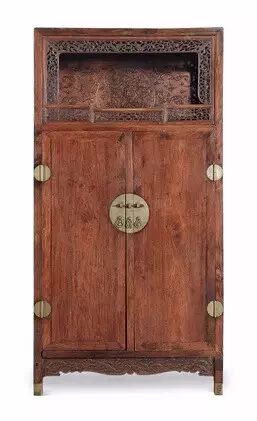 黄花梨上格券口带栏杆亮格柜