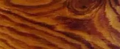 构造特征:半环孔材或散孔材。生长轮明显。心材红褐、深红褐或金黄色,常带深浅相间的深色条纹,划痕未见,水浸出液深黄褐色,有荧光。管孔在生长轮内部,肉眼下颇明显,弦向直径最大258μm,平均141μm,数甚少至略少,1~1 2 个/mm2,常含黄色沉积物。轴向薄壁组织丰富,在放大镜下明显,主为同心层式傍管窄带状、聚翼状及细线状(宽1~4 细胞)。木纤维壁薄至厚。木射线在放大镜下可见,波痕在放大镜下明显,射线组织同形单列。新切面有香气或很微弱,结构细,纹理斜至略交错,有著名的Amboyna 树包(瘤)花纹,气干密度O.53~O.94 g/CM3。此种株间材色和重量差异很大。