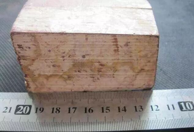 2、真正印度走私的有两种常见颜色:白漆料或蓝漆料。这些料多是拆房、拆庙或者拆棺材出来的老紫檀,料质非常细腻0都有细小得近乎看不清的牛毛纹,还有根据运气不同而赶上的金星,火焰纹和油性十分丰富,让人看着欣喜万分,紫檀的那种鲜红和橘红色照着满堂蓬荜生辉,我亲眼看到一根白漆料一点点从白色打磨掉氧化层,一直到看到“鲜肉”,确实感叹现在还能看到这么好的老紫檀木料实属不易。很多人说涂抹白灰是为了氧化,这点并不成立,以为最后紫檀的白漆料都是要打磨出光彩的,其实对于商家而言打磨掉这些氧化物是很烦人的,氧化层阻碍了大家对老紫檀美丽火焰纹和牛毛纹的观赏,所以我认为涂抹白灰氧化做旧一般都是用在家具上,作为木料实在没有这个必要。