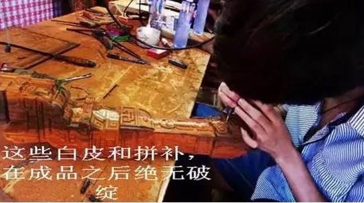 红木原木有白皮原本是十分自然的现象,按照“红木国际标准”,只有芯材能成为“红木”,而白皮则不能超过3%。而在黑心的红木家具厂家有个“独有”的职业名曰“画师”,就是在木头画色上去的师傅,凭借其高超的“画色手艺”,可以把没有纹理的白皮画出天衣无缝的纹理,这些画师的手艺让一些真正的画家都自愧不如!