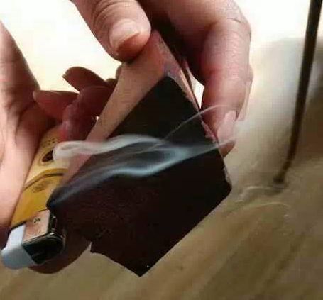注意:火苗与木头的距离要把握好,太远了加不了热,气味散发不出来,太近了会把木质表面烤糊,由远即近的多尝试几次即可。