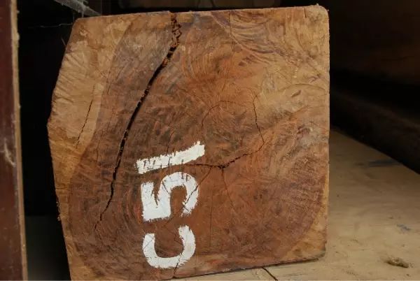 上图虽是产于同一个地方的交趾黄檀北部料,但因生长年限、砍伐时间长短所形成的心材色差还是很大。靠近底部的大板料,因树木更老,砍伐后存放的时间更长,颜色要深很多哦。