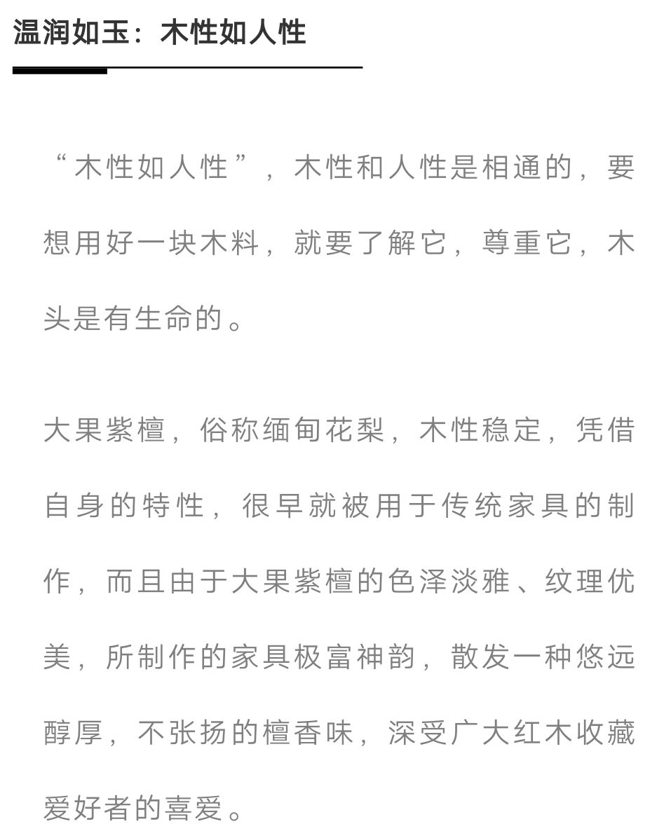 花梨木,含蓄又神秘,花梨木,温润如玉,花梨木有着独一无二的香味和色泽,被冠以“红木界大众情人”的美称。