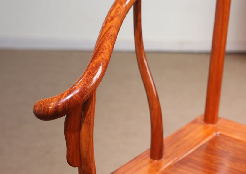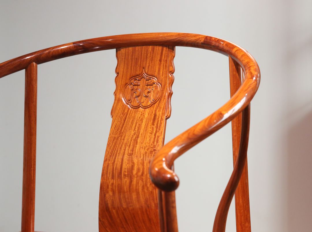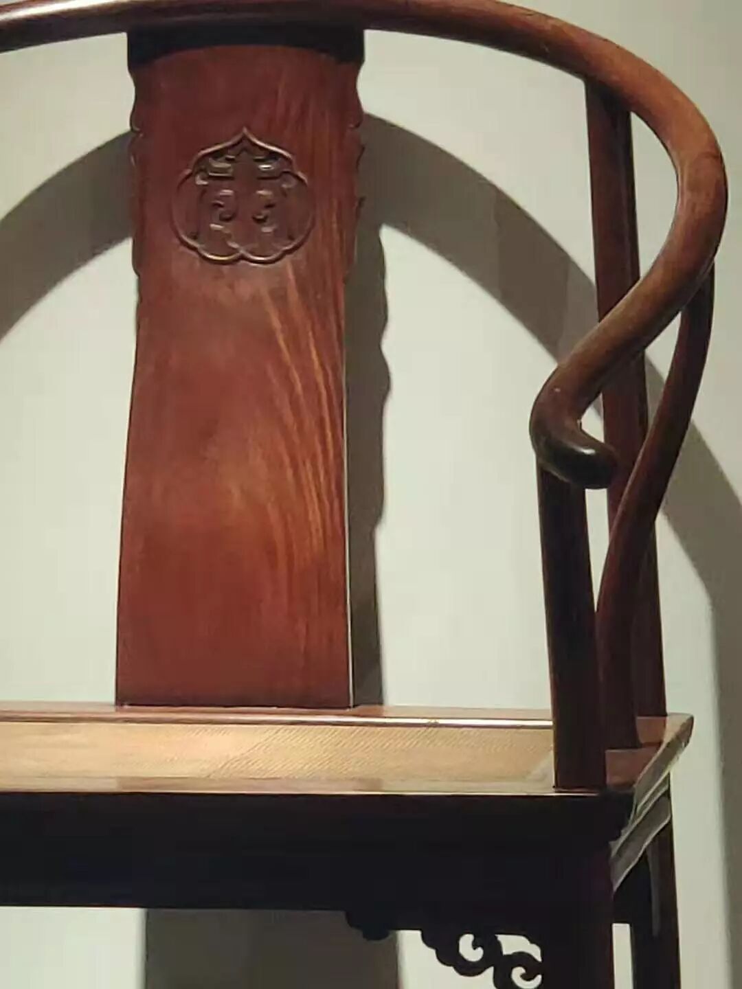 大圆弧的榫卯结构,镶接的天衣无缝,工艺精湛无比,椅圈粗细匀称,增一分太粗,减一分太细,恰到好处。