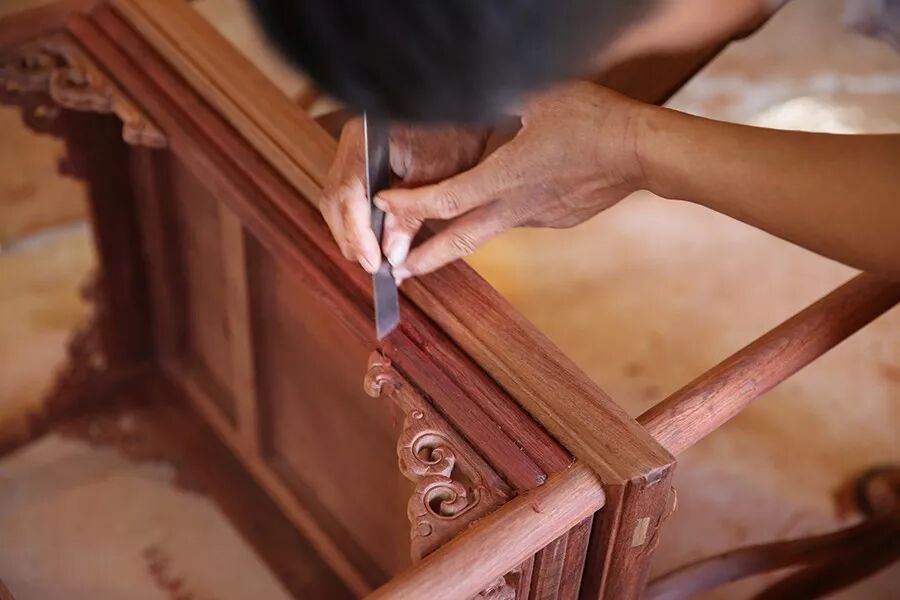 在中国历史上,家具中刻有文字的非常罕见,而且一般仅是阴刻,是在家具做好后再用刀子把字刻出来。