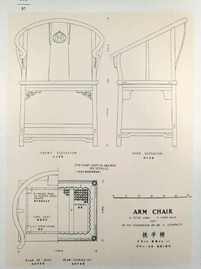 《中国花梨家具图考》书中对寿字纹圈椅的详细测绘