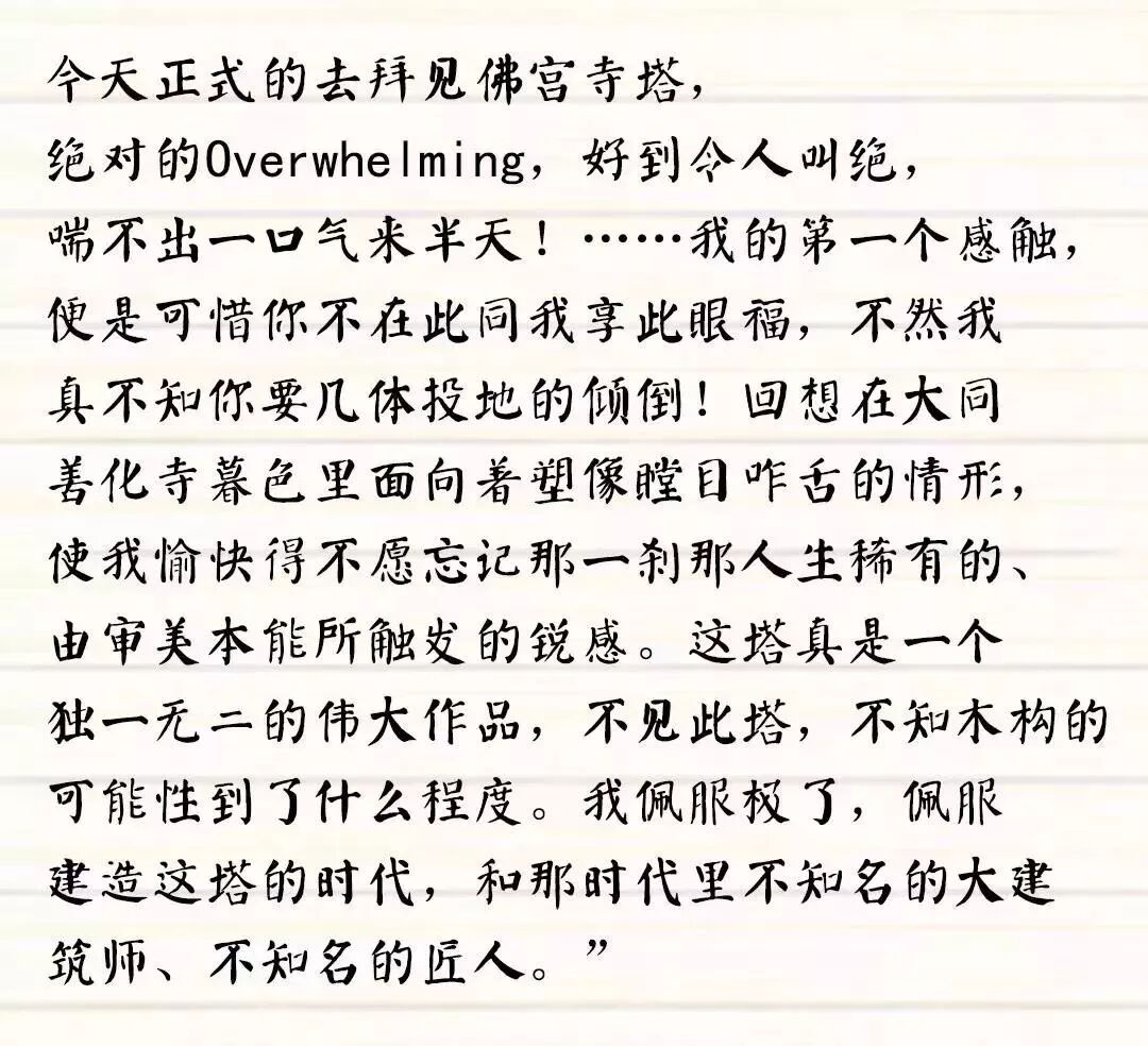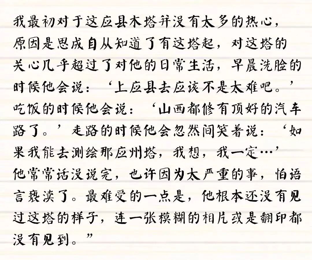 描述了梁思成对应县木塔朝思暮想的情景。