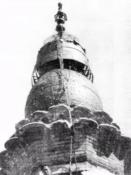 梁思成拍摄塔刹,左下角为莫宗江