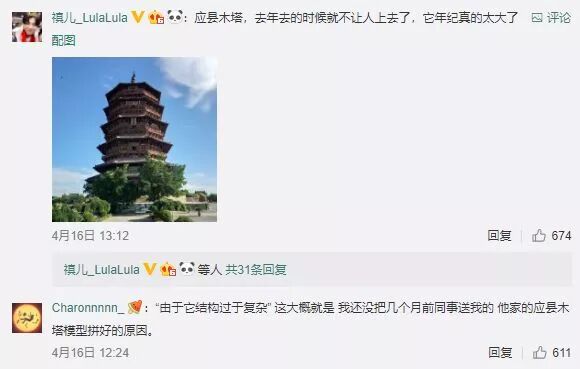 分享着应县木塔之旅所带来的喜悦与幸福: