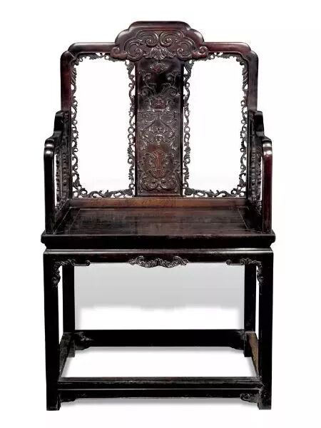 紫檀有束腰三弯腿带托泥西番莲纹大扶手椅