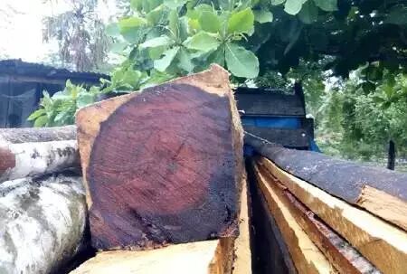 2、新切面有酸味,心材耐腐、无虫蛀,板面初为浅黄褐带深紫色宽条纹,日久变为紫褐色,有光泽,材性稳定不开裂。