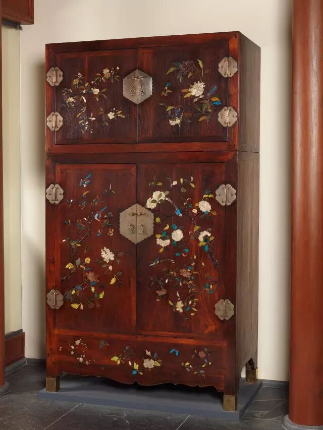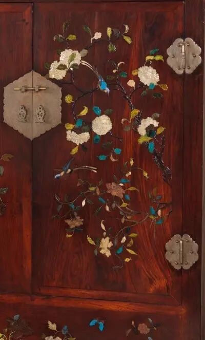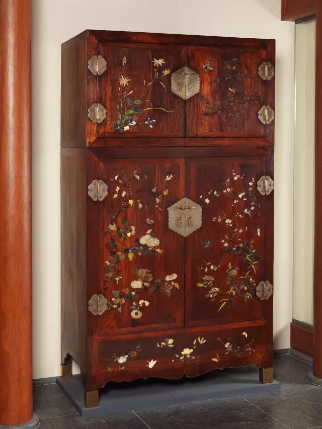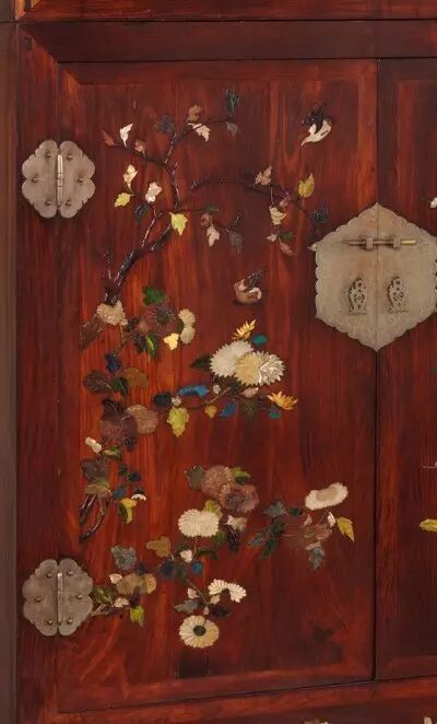 明 16-17世纪 黄花梨百宝嵌顶箱柜