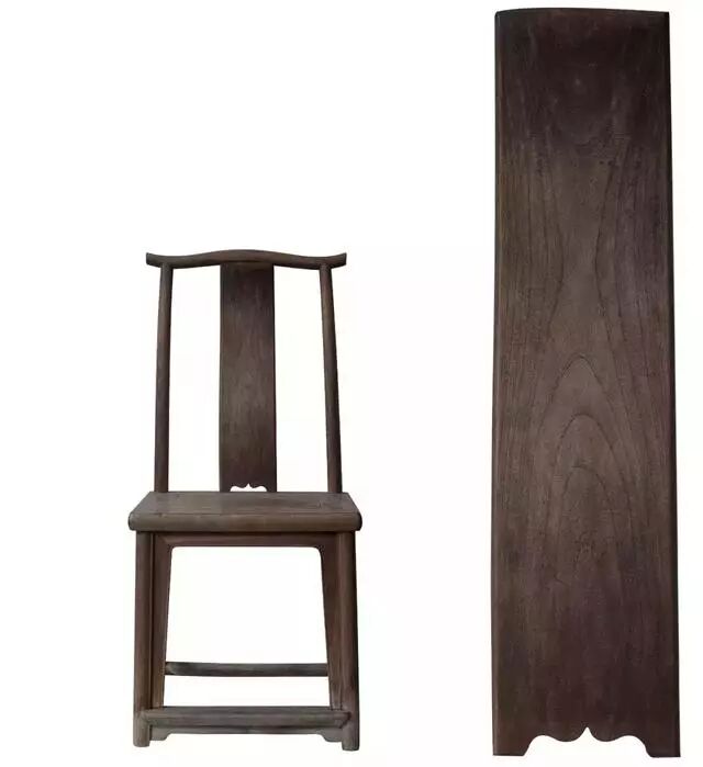 选择一块纹理优美的木材,放置在家具的适当部位,最能体现出户家或工匠的独到用心,实例如以下这四把椅子,其槽板纹理优美、意态万千:或如宝塔山峦、或如行云流水、或如盘根错节……这种天成大美,较之繁缛雕饰,更令人品之不尽。