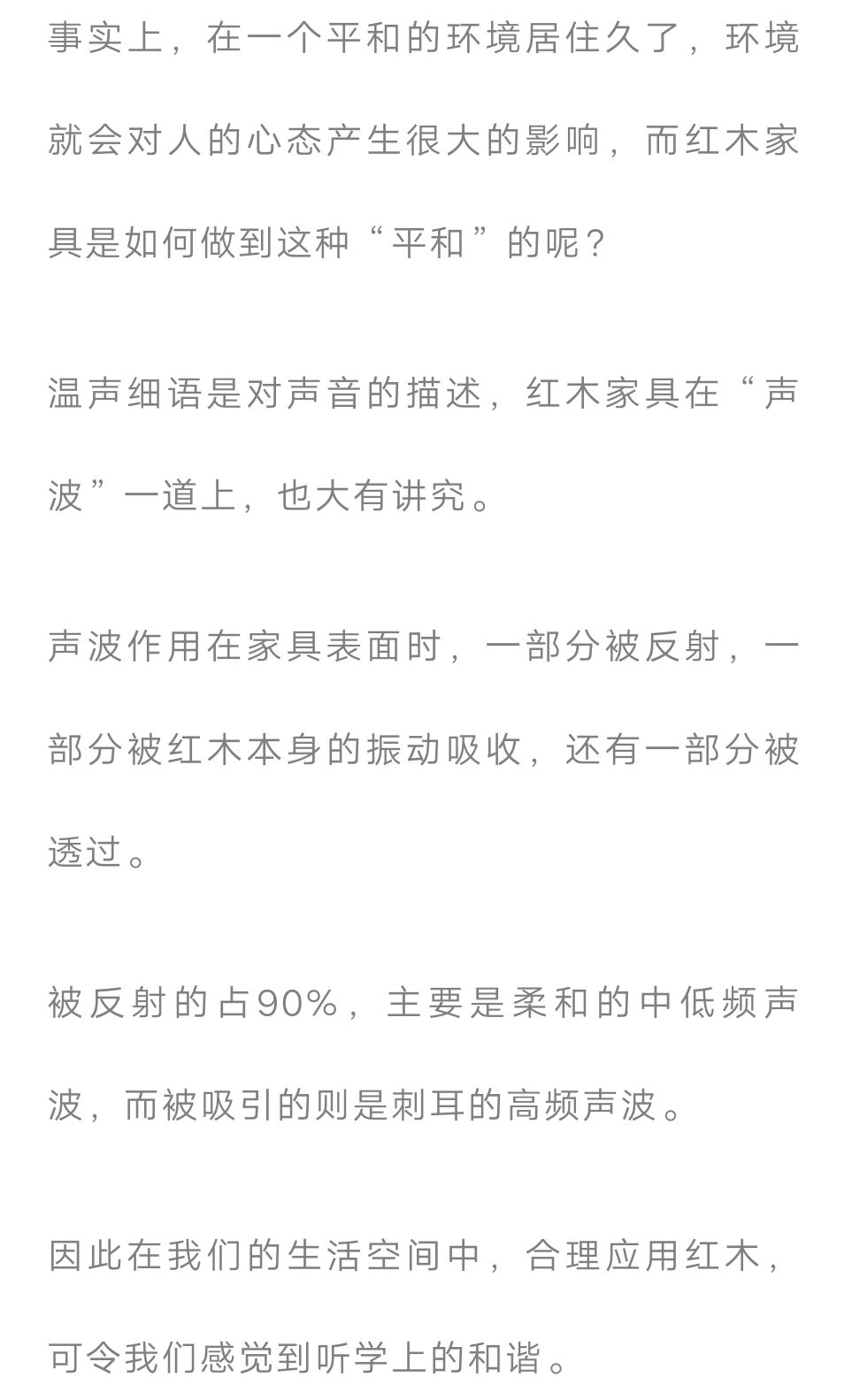 红木的自然光调节作用在这个时候开始逐渐受到人们的关注,红木带给我们视觉上的和谐,不仅仅是其柔和的反射特性,更重要的是木材可以吸收阳光中的紫外线,减轻紫外线对人体的危害。