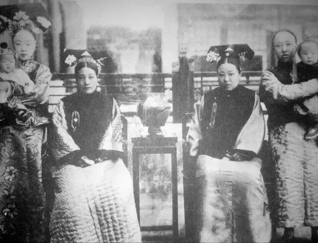 尊卑有别,左右站着的应是仆人与丫鬟