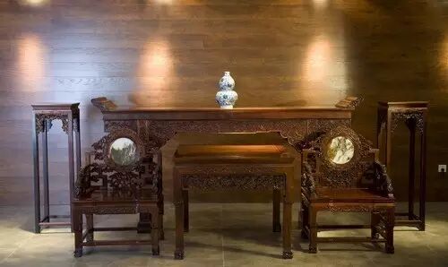 在中式家具中加入更多现代元素,如将玻璃、不锈钢与实木、岩石的适当搭配,如在中式木质家具中搭配水晶花瓶等,使得整体的装饰效果更有灵性。