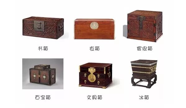 书箱、衣箱、官皮箱、百宝箱、文具箱、其他箱匣、橱、橱柜、方角柜、圆角柜、顶格柜、亮柜