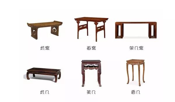 长方桌与长条桌、方桌、圆桌、坑桌、酒桌、画桌、琴桌、棋牌桌、炕桌、条案、画案、架几案、炕几、茶几、香几、套几、漆几、花几