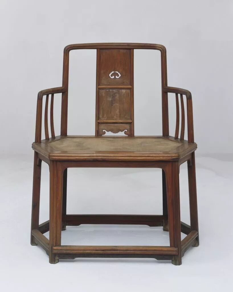 此椅为四件一堂,由于其为六方形,扶手外撇,显得端庄大气,通常于正厅两厢对称陈设。