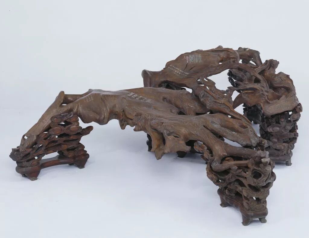 槎,本意指木筏。天然木根泛指天然生成而非人为加工的树根。此槎由一块天然生成的榆树根稍加修整而成为一坐具。
