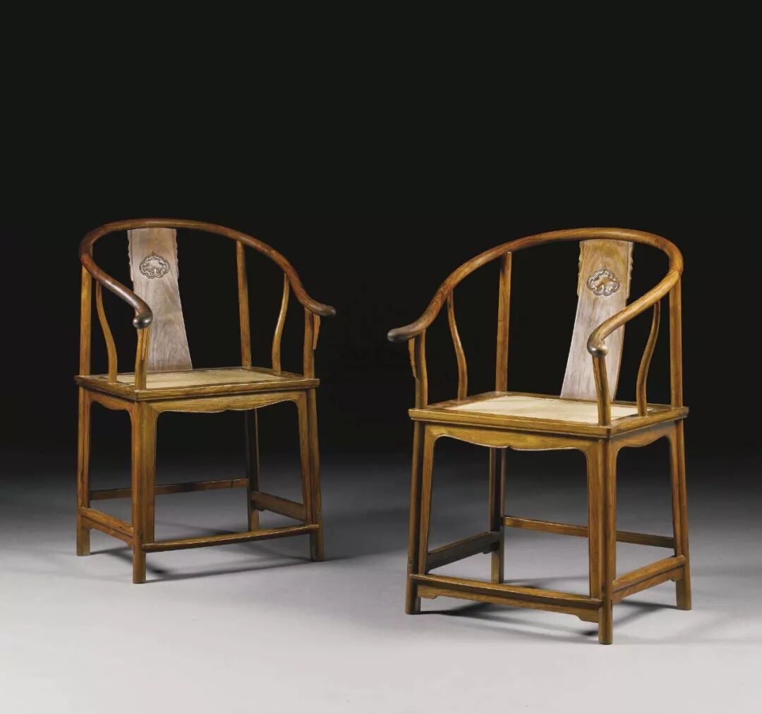 圈椅的行最能体现明式家具的灵韵,最基本的圈椅是素圈椅,注重通体的光滑素雅,椅盘之上为圆木椅圈后背和扶手一顺而下,注重肘部、腹部、臀部的支撑。椅盘之下外圆里方,三面素牙条,暗合天圆地方的传统思想。整体除靠背板上有简单的雕刻,扶手鹅脖之间有晓得角牙之外再无其他的装饰。