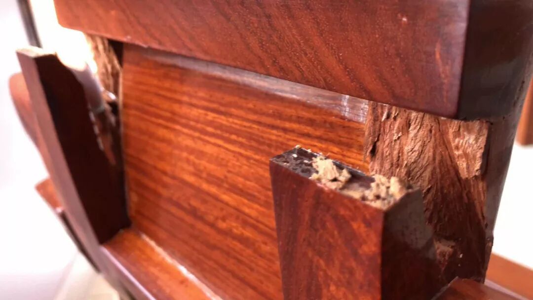 有些黑心的“高档”红木家具连所谓的“伪劣产品”都称不上,完全就是一堆用白皮和边角碎料拼凑起来的。