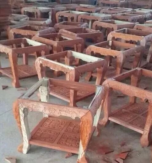 以小叶紫檀皇宫椅为例,印度发来的一套毛坯料的价格都在大十几万,但在有些地方,一套小叶紫檀皇宫椅的价格就是可以只卖几万!