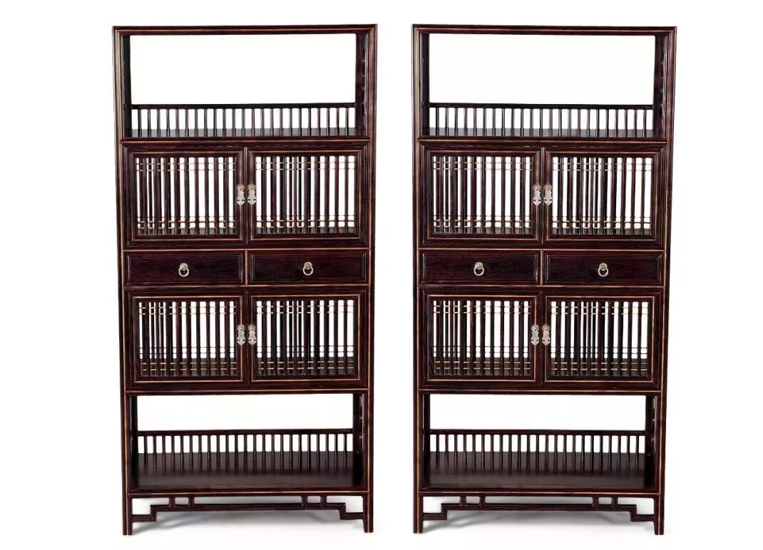 小叶紫檀 明式圆角柜一对