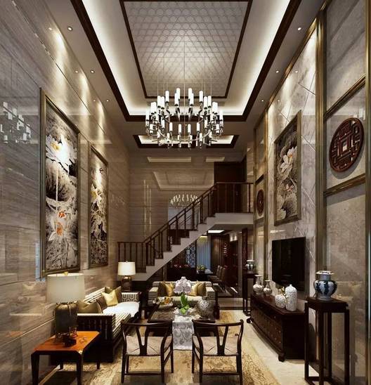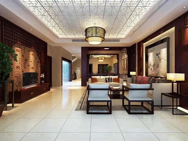 新中式风格客厅,红木电视柜茶几座椅搭配的和谐不突兀。