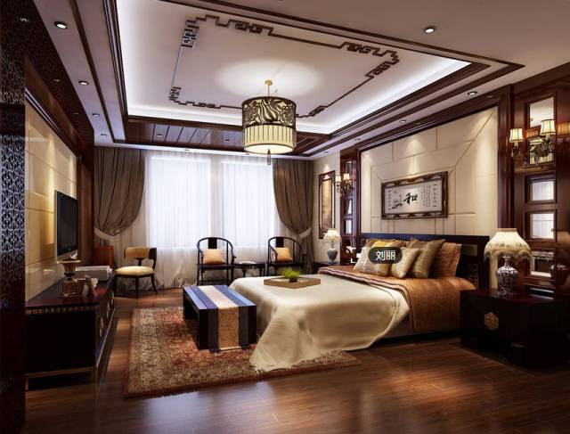 新中式风卧室,红木梳妆台红木电视柜红木椅凳,可能睡一觉就穿越回了某个历史朝代也说不定。