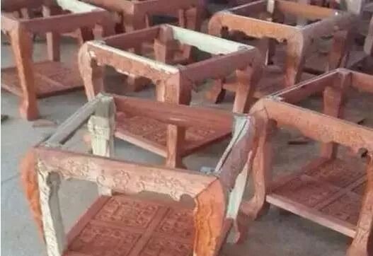 在该地区那些做高档且便宜红木家具的厂里,补料不仅是一道必备工艺,还是重头戏!
