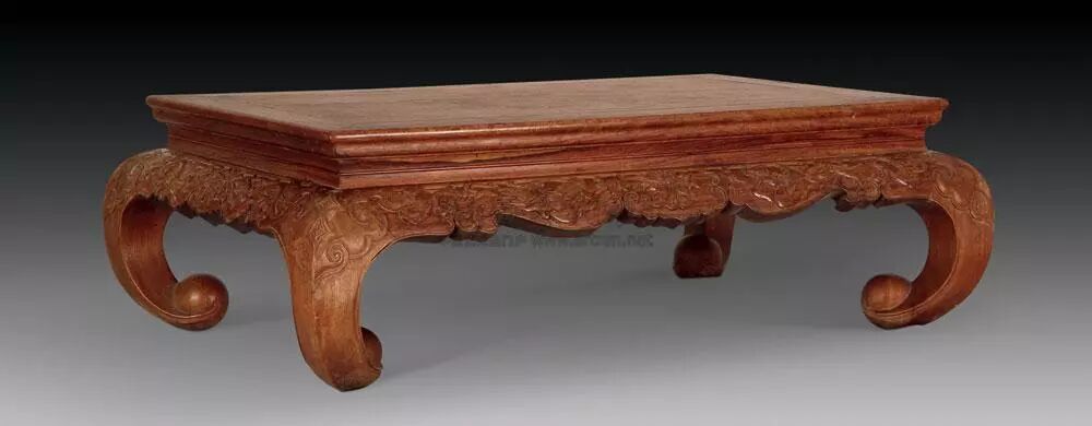 明 黄花梨卷叶纹三弯腿炕桌