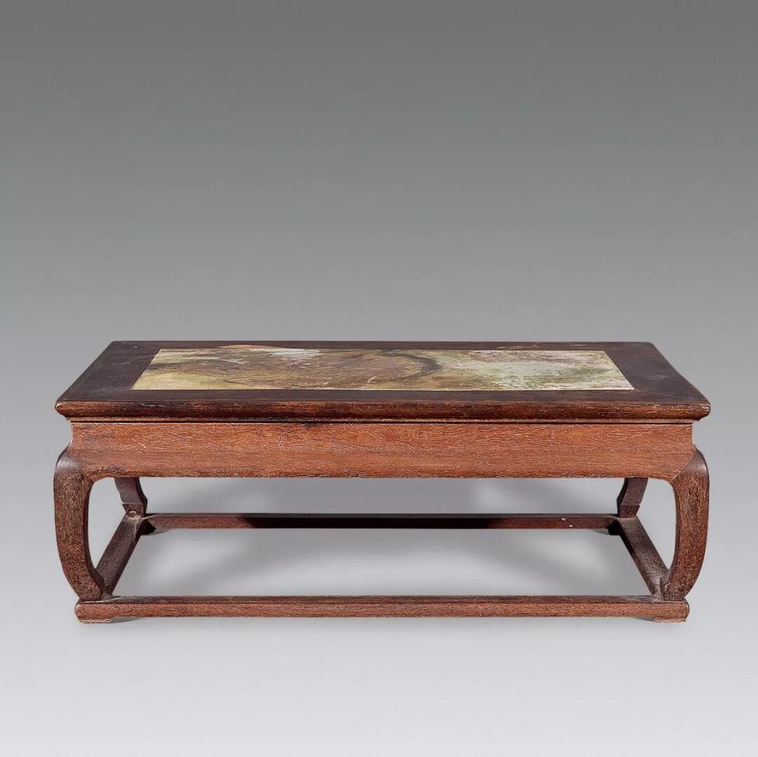 清 紫檀云石面马蹄腿托泥小座