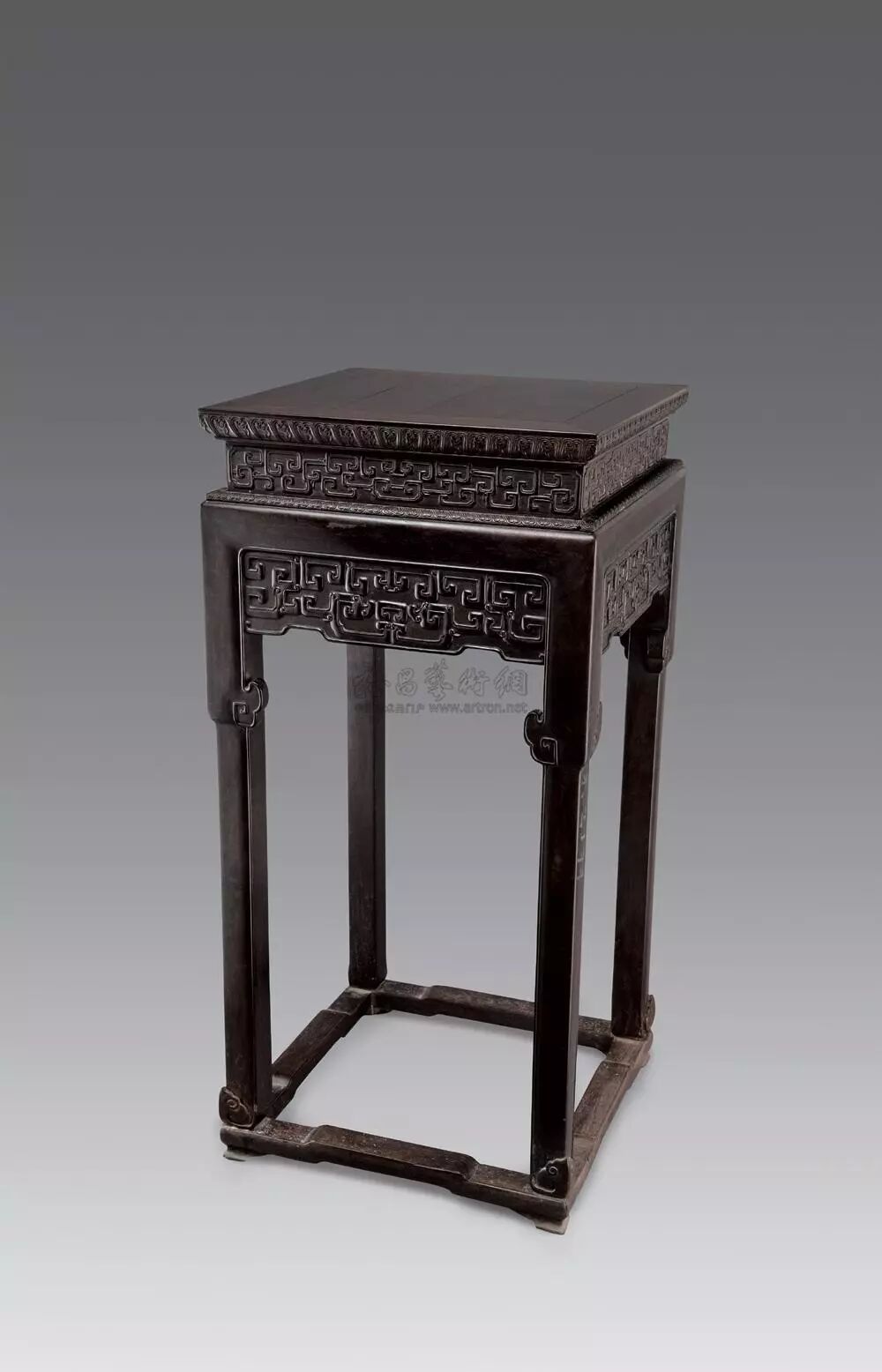 清中期 紫檀展腿式特高束腰雕拐子带托泥香几