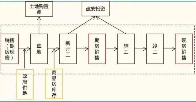 房地产从拿地、新开工、期房预售、施工、再到峻工交付需要一个周期。
