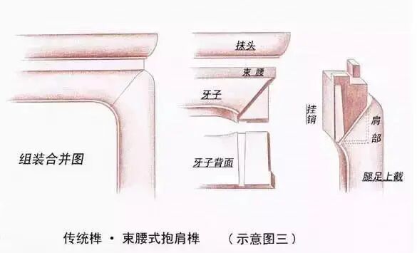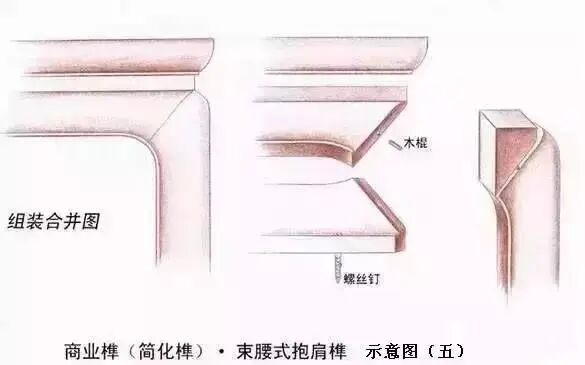 再从示意图三和示意图五的对比来看,同样是束腰式抱肩榫,也十分不同。
