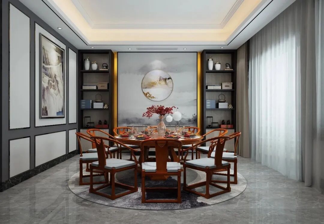 如果说家里人口比较多,那么在规划餐厅布局的时候要拓宽面积,后续可以更好地安置餐桌,提升餐区温暖氛围,若有足够空间,尽量不要让餐桌靠在墙面上。