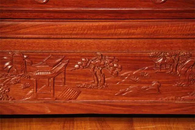 红木家具传承历史文明,其文案雕饰、绘画代表着丰富的历史文化内涵。红木家具大致划分为明、清两大款式,清式家具造型稳重,装饰手法丰富多彩,做工精细,给人富丽堂皇、豪华稳重之感。明式家具造型简练,文人气息厚实,给人以舒展、大方、明快、清新、淳朴、典雅的极高精神享受,具有永恒的艺术魅力。红木家具是使用者品味修养,精神境界的标志,利于修心。