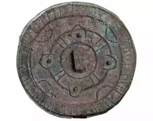 商晚期环状光芒纹镜,尺寸较小(直径11.5厘米),为少见的早期铜镜,纹饰间拙。