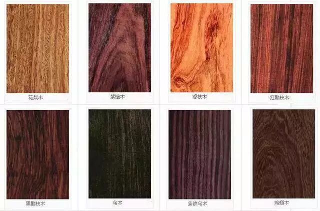 根据国家标准,“红木”范围确定为5属8类、33个主要品种。5属是以树木学的类属来命名的,即紫檀属、黄檀属、崖豆属、铁刀木属及柿树属。8类则是以木材的商品名来命名的,即紫檀木类、花梨木类、香枝木类、黑酸枝木类、红酸枝木类、乌木类、条纹乌木类和鸡翅木类。