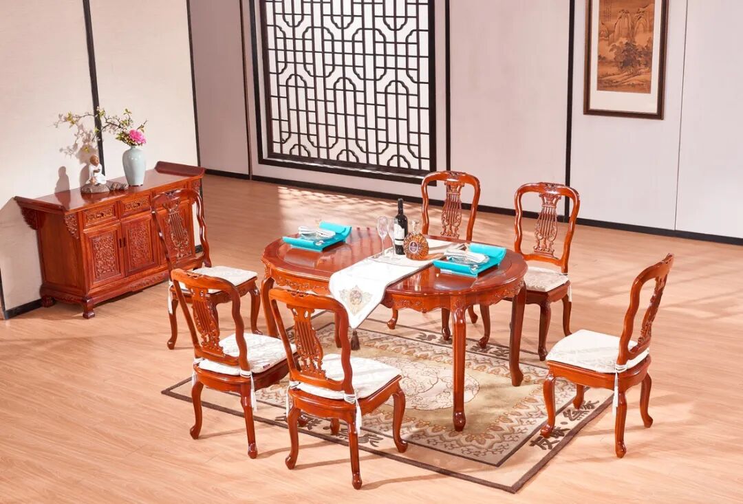 “海派家具”风格,不是“西洋家具”,也不是中国传统家具,家具用材基本以红木、花梨木为材质。