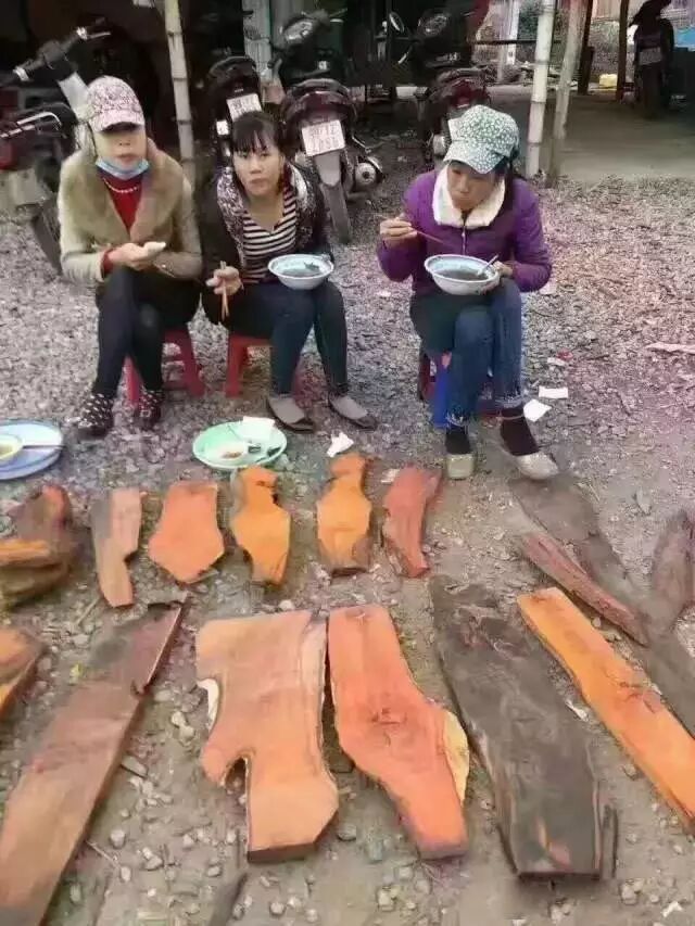 这里号称世界上最大的红木原材交易市场,如今大红酸枝也是大料好料难寻。目前市场上大部分大红酸枝原材直径均在10厘米以下,而且大多弯曲不直,奇形怪状,可用于家具制造的料少之又少。