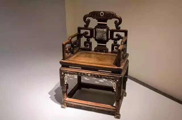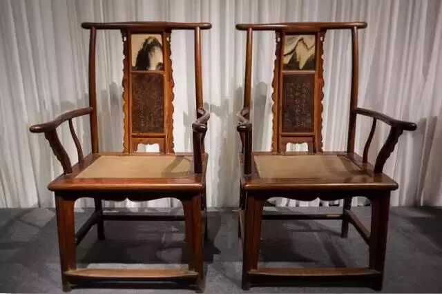 核桃木灵芝纹嵌大理石扶手椅 清中晚期