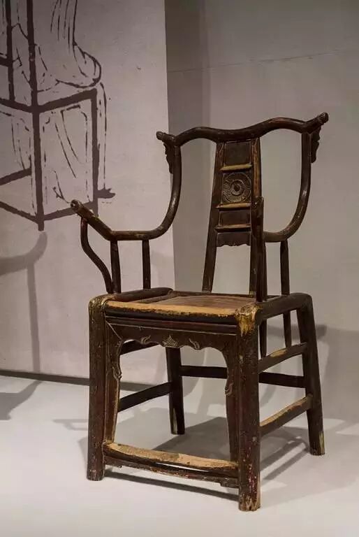 黑漆彩绘花卉纹靠背椅 元至明早期