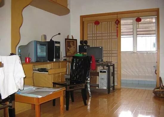 子是单位分的(好羡慕!!!),装修是全民统一的,大白刷墙,水泥地面,木制门窗,油漆饰新。一床一桌,两椅两箱,挂历月历,照片奖状,领袖画像...倒也省事,但家家一个样。