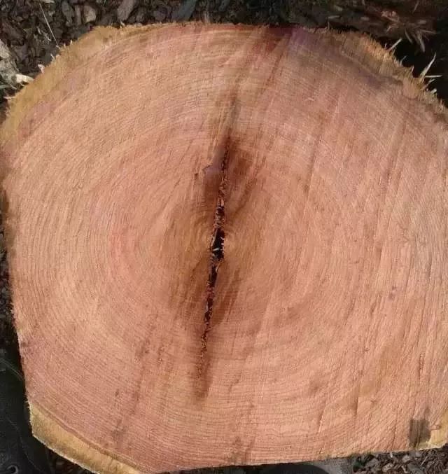 一位木友锯到了一棵年轮非常明显的非洲花梨木。因为平时很少见到年轮这么清晰的,所以放在朋友圈里“炫宝”,我们借用来与诸位分享。