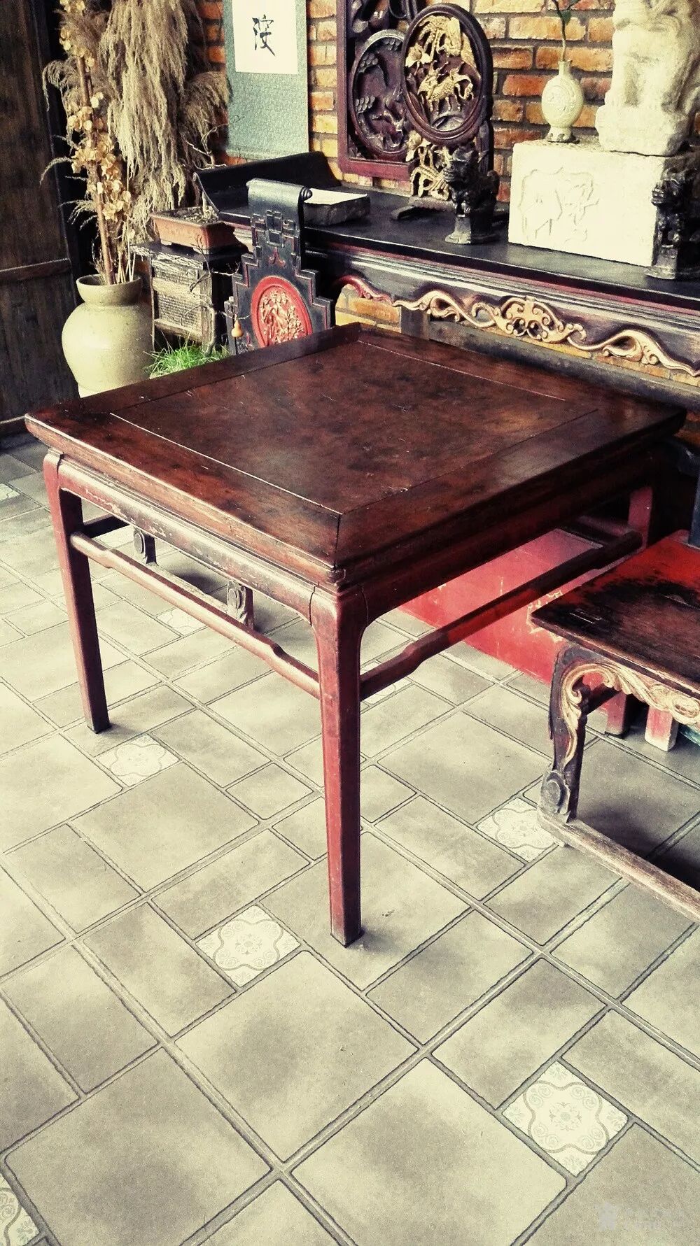八仙桌制作要选上好木料,制成0.88米长宽相同的正方形桌面,讲究的人家还用红漆把八仙桌刷成红色,使它更神圣充满喜气。