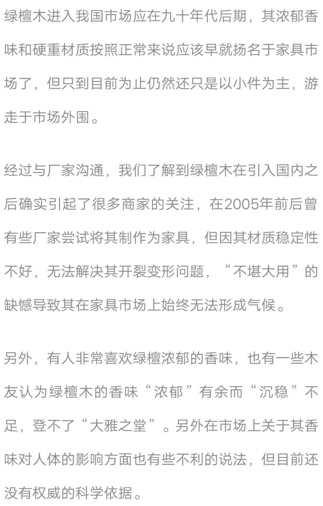 一种木材的兴起,需要综合指标的过硬,不仅要有可圈可点之处,还不能在任何一个方面存在严重的硬伤,否则都难以汇入主流。