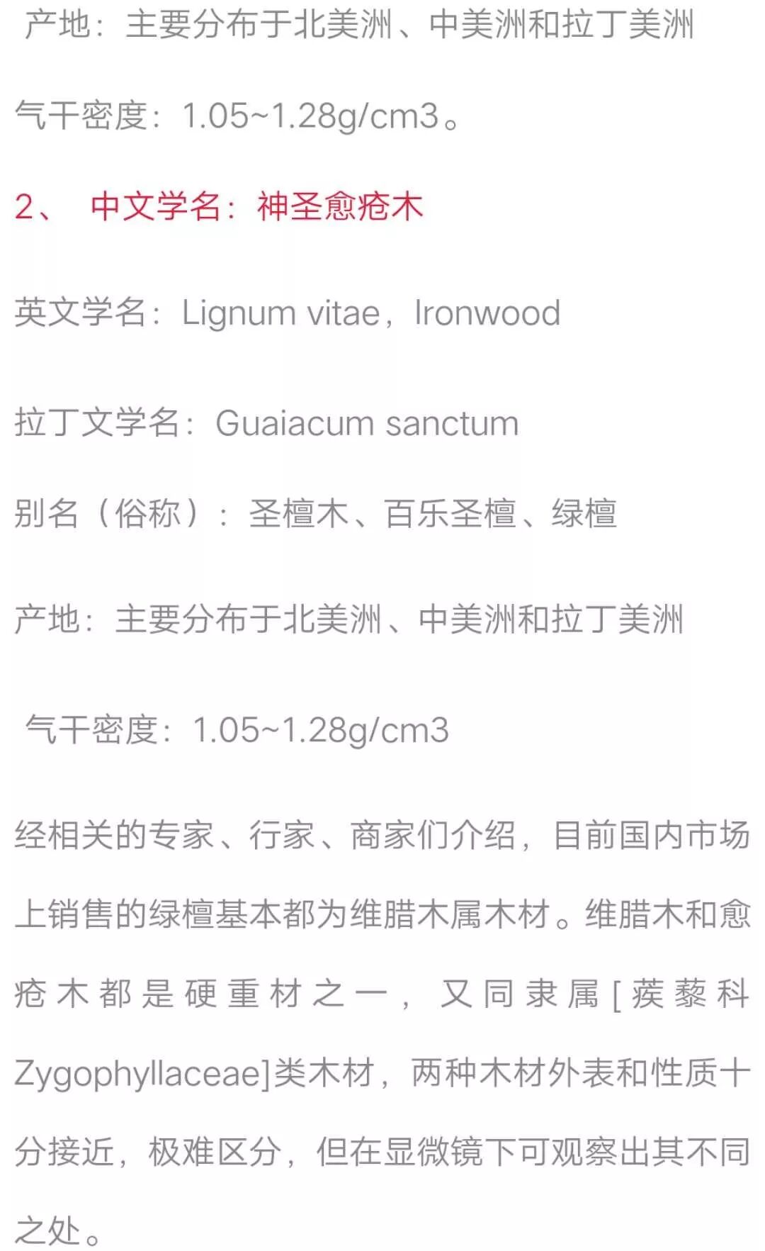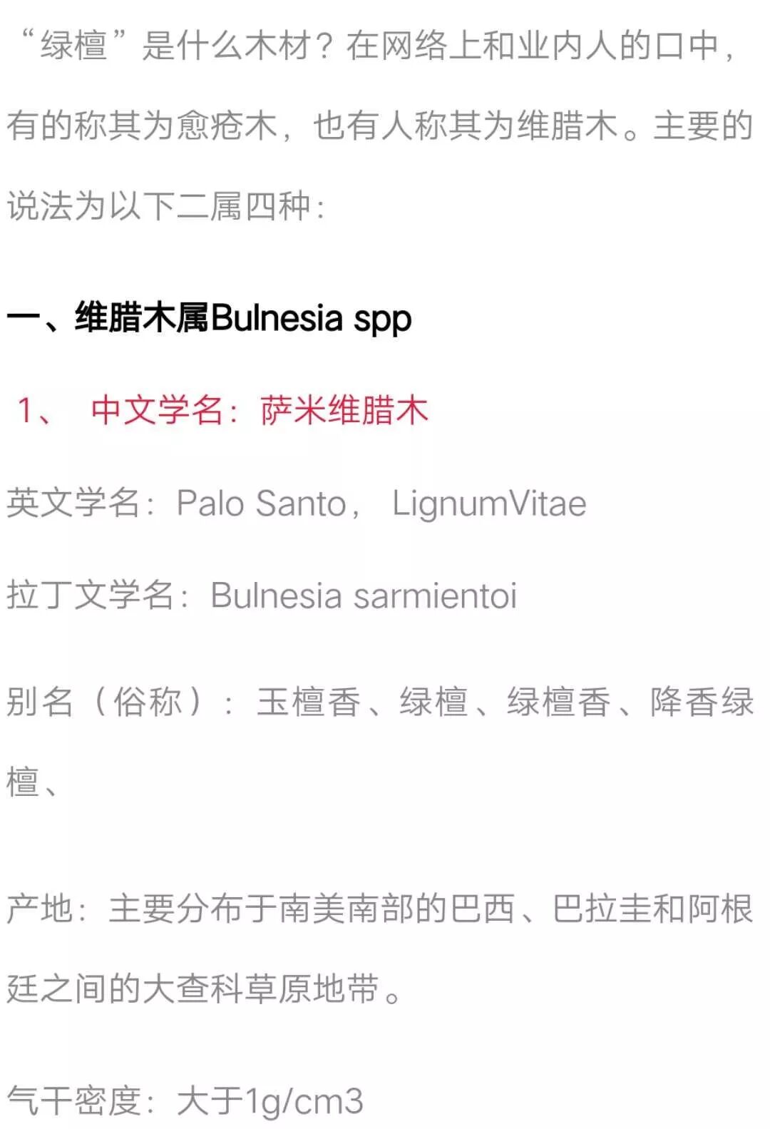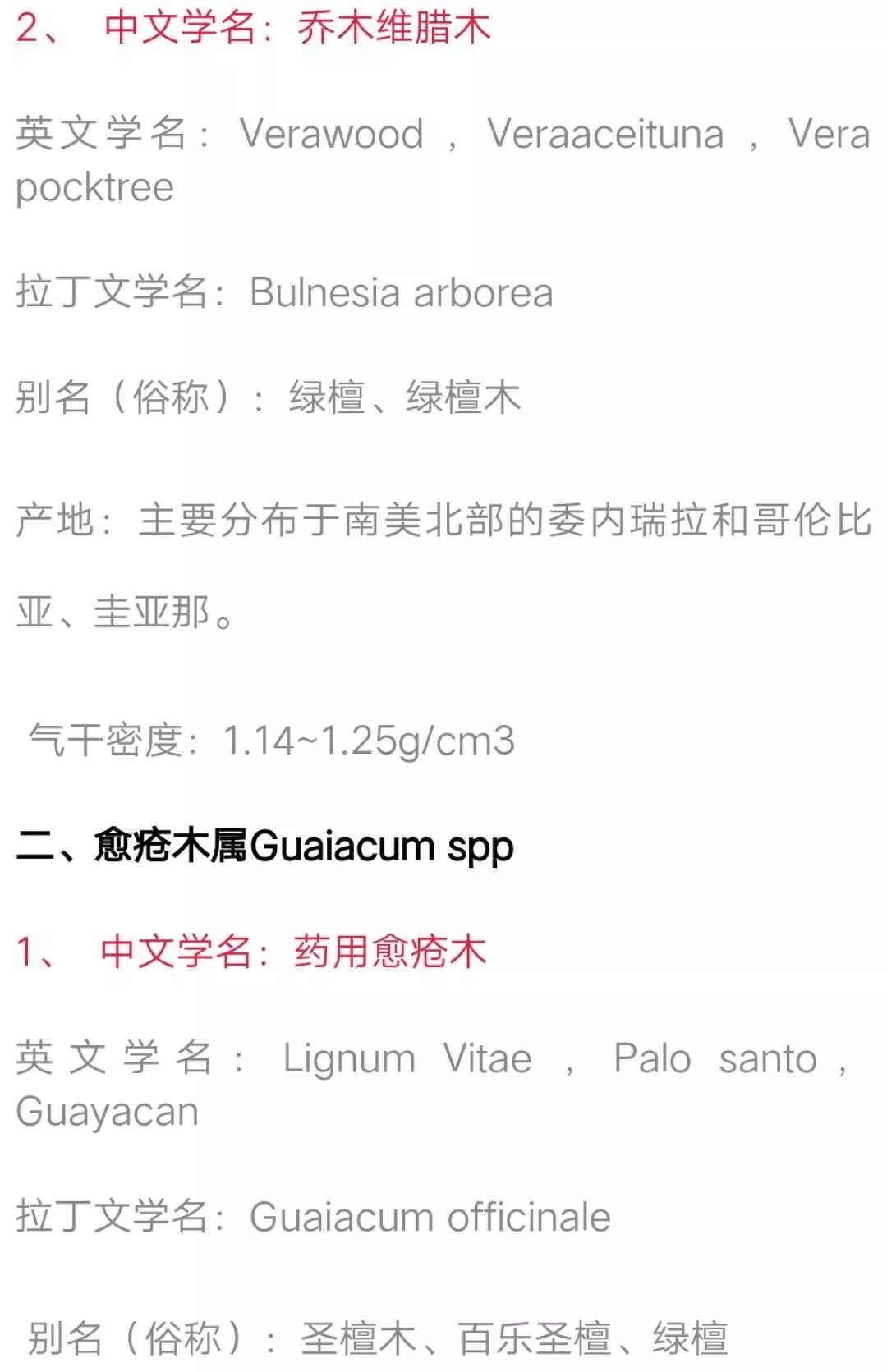 另据了解,流通我国市面俗称 绿檀香 的木材应是(萨米维腊木Bulnesia sarmientoi),主要来自阿根廷和巴拉圭,而俗称 绿檀 的应是(乔木维腊木Bulnesiaarborea),主要来自哥伦比亚和圭亚那。