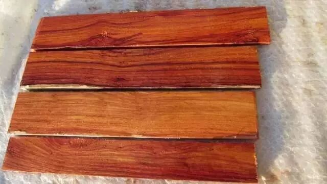 交趾黄檀心材新切面颜色是暗红或紫红色,微凹黄檀是橘红色,特别要注意的是要看新切面,因为微凹黄檀材色久则变深,变深后的颜色与交趾黄檀的颜色非常接近,此时在颜色上时非常难辨别的,这也是微凹黄檀能冒充交趾黄檀的一个原因所在。